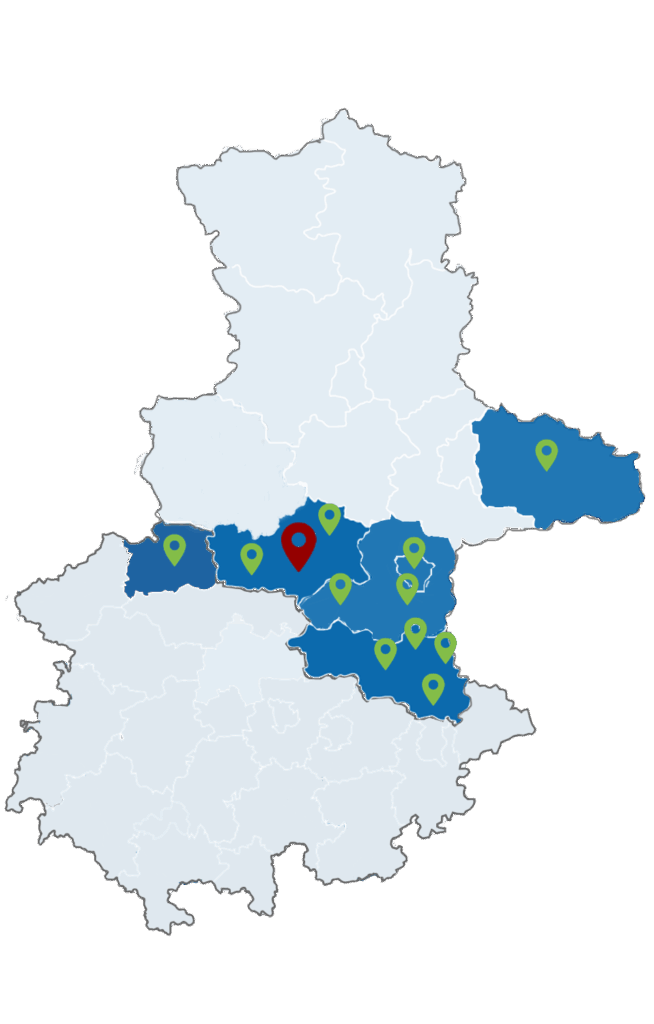 Unsere derzeit 13 Standorte befinden sich in 5 sachsen-anhaltinischen Landkreisen und 1 thüringischem Landkreis. Der Hauptsitz der Zukunftswerkstatt Mitteldeutschland befindet sich in der Lutherstadt Eisleben.